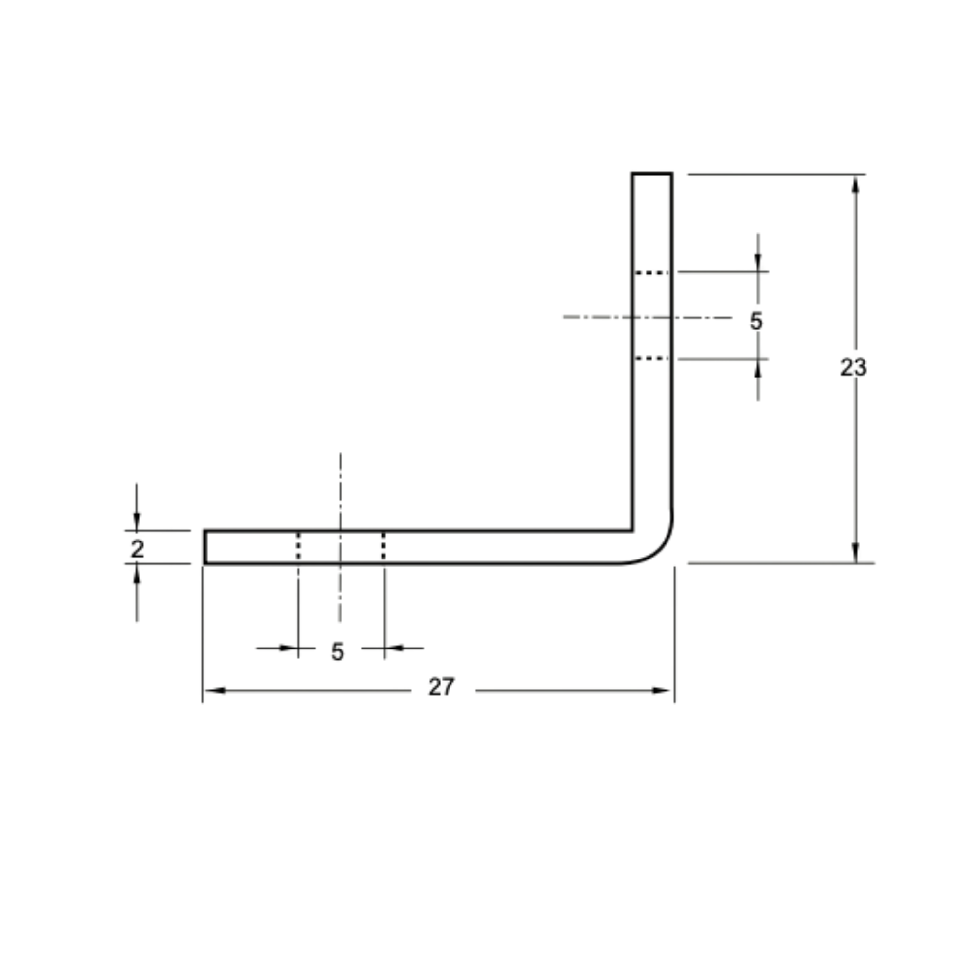 Wij leveren hoekjes in een standaardmaat, waarvan de afmetingen te zien zijn op de tekening bovenin de pagina. Het hoekje wordt standaard verzinkt afgewerkt.