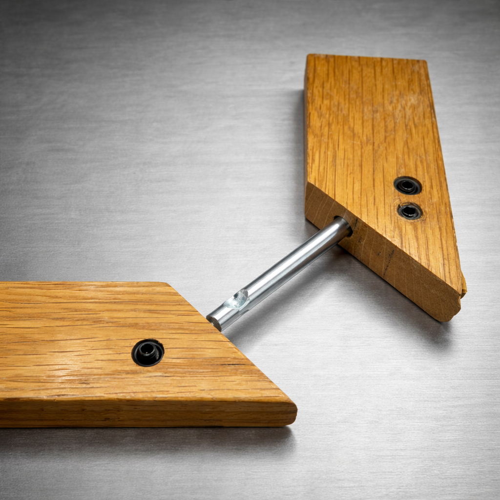 Met de SPOR koppelstift realiseert u binnen het SPOR-systeem een verbinding met een hoge trekvastheid, die bovendien vrijwel onzichtbaar in het werkstuk kan worden weggewerkt. Deze variant van het systeem gebruikt u voornamelijk bij T-verbindingen en om twee onderdelen recht naar elkaar toe te trekken.