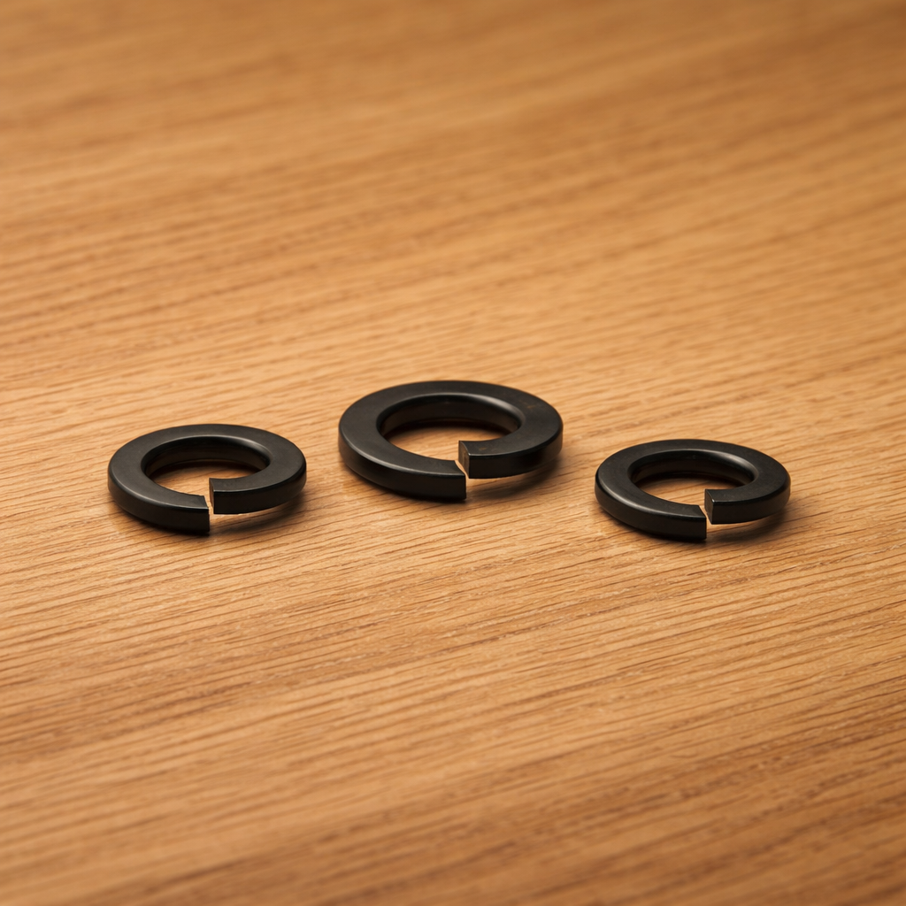 Veerringen zijn standaard verkrijgbaar in de maten M6 en M8. Ze worden geleverd in gezwart staal.